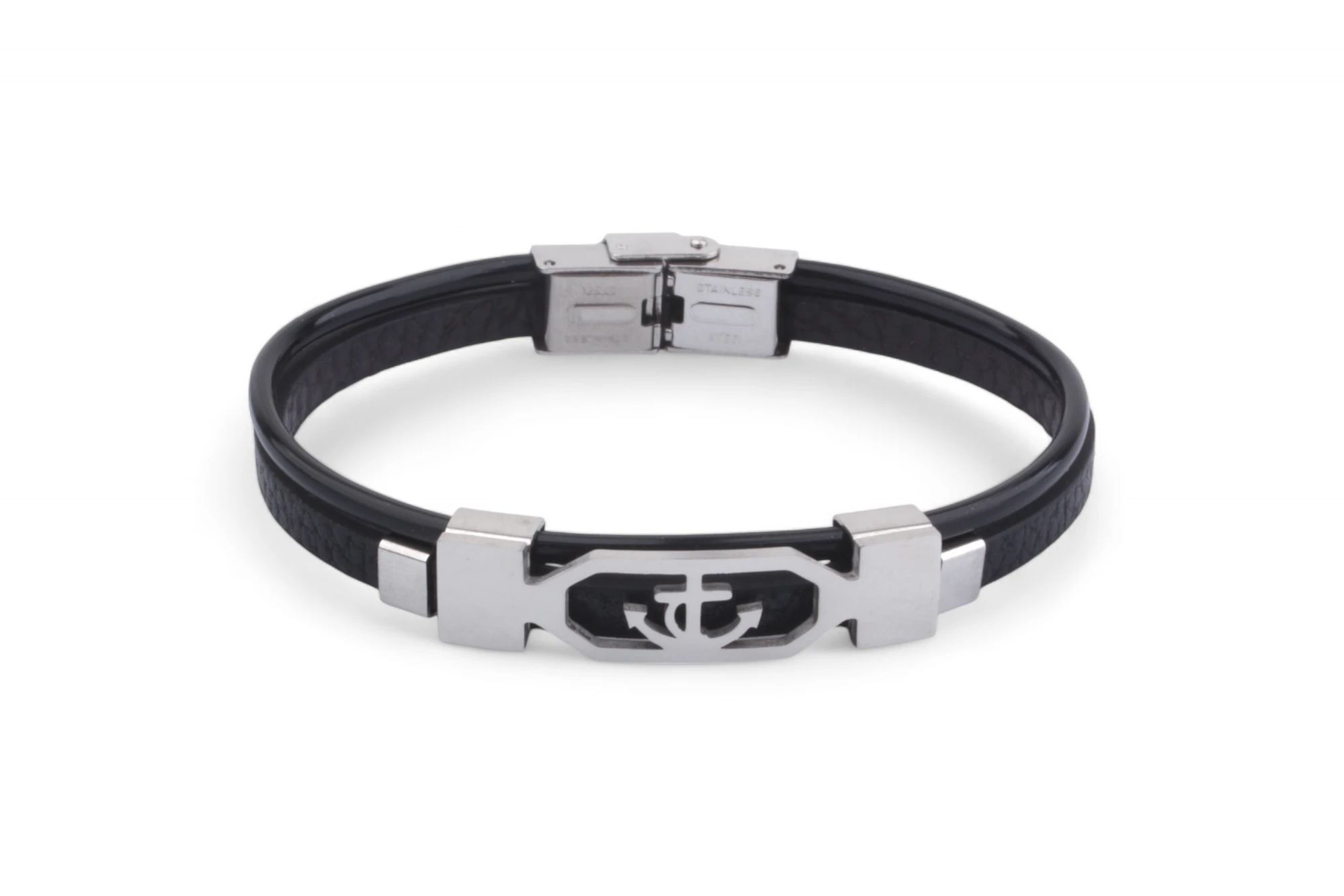 Kožený náramek s ocelovou ozdobou