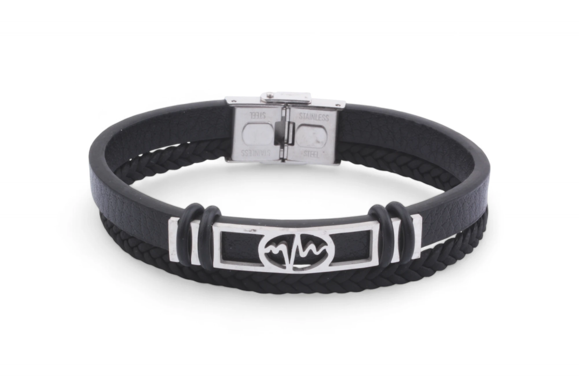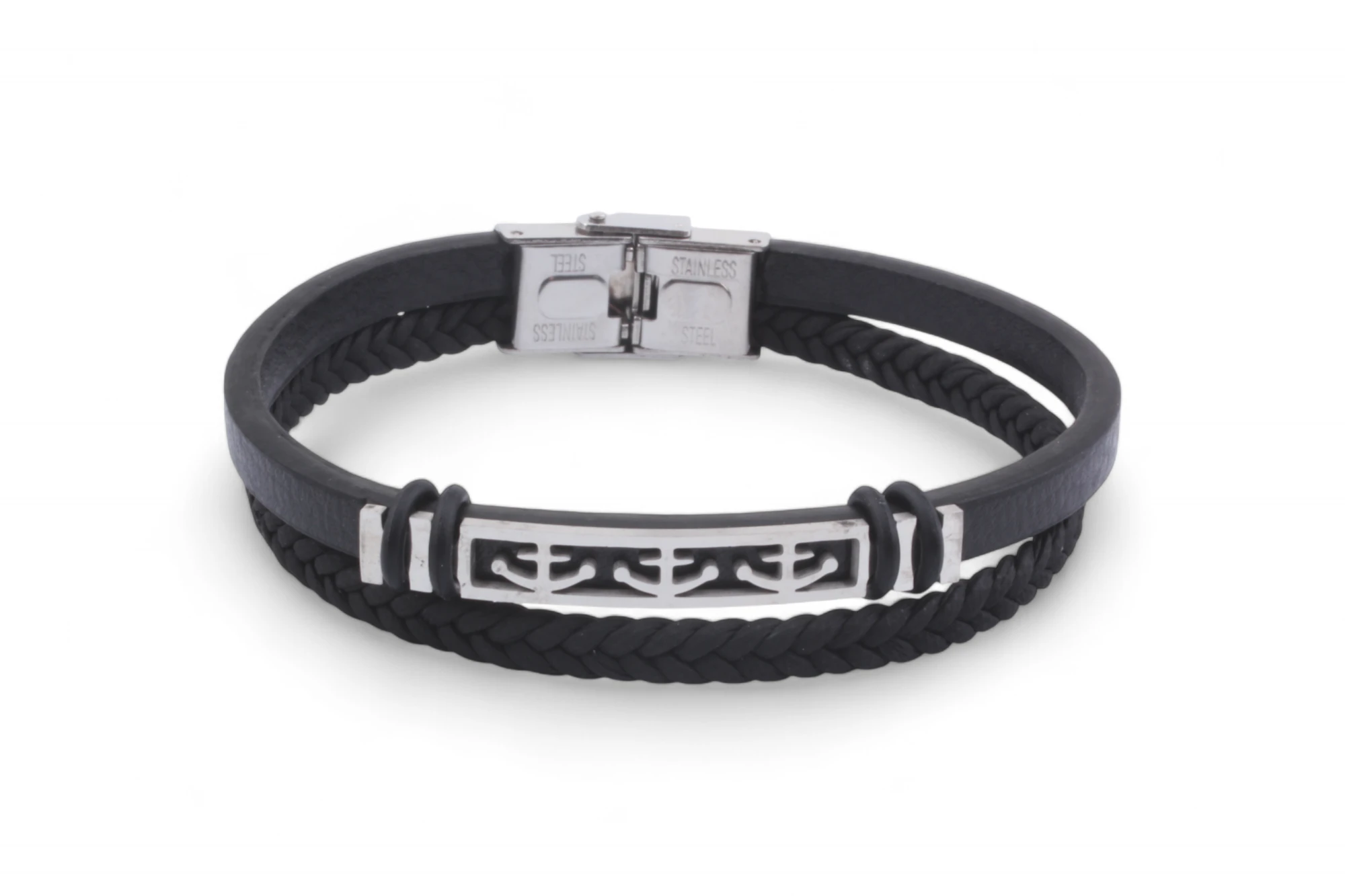Pánský kožený náramek s ocelovou ozdobou