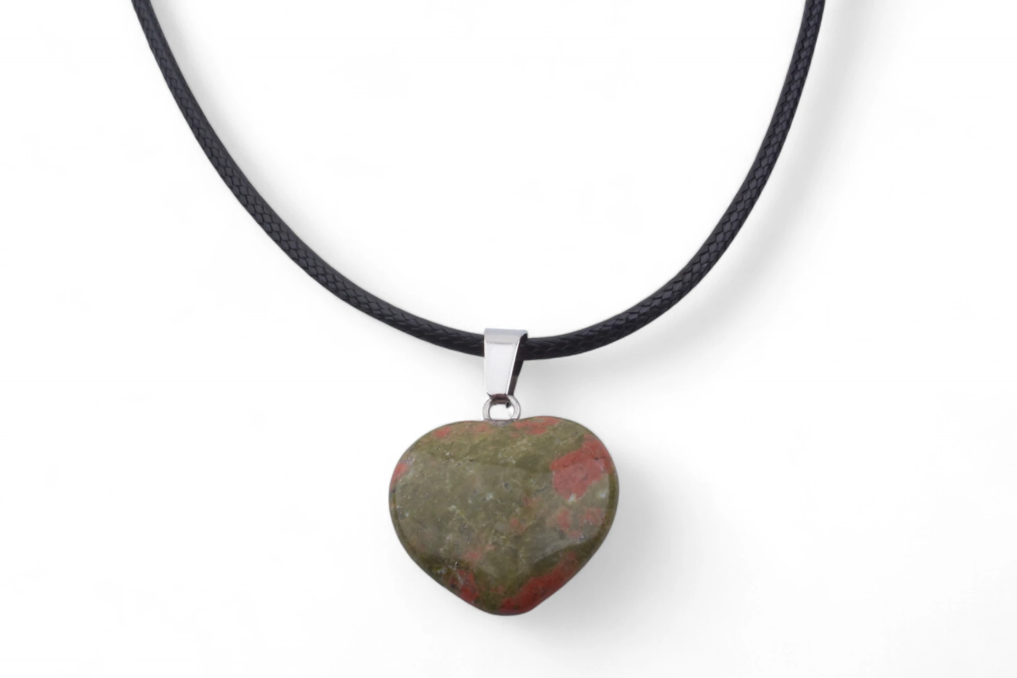 Přívěsek srdce na šňůrce z přírodního kamene Unakit 174 Kč