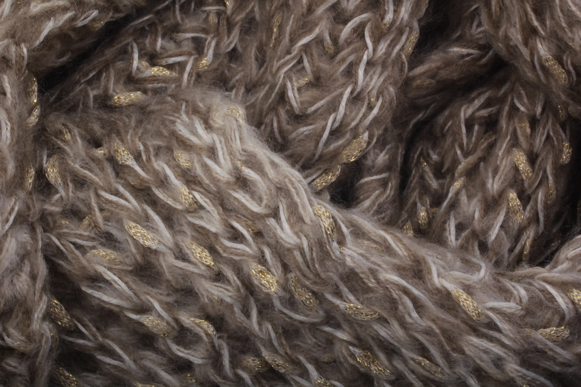 Zimní pletená šála s nitkou - tunel světle hnědá s béžovou