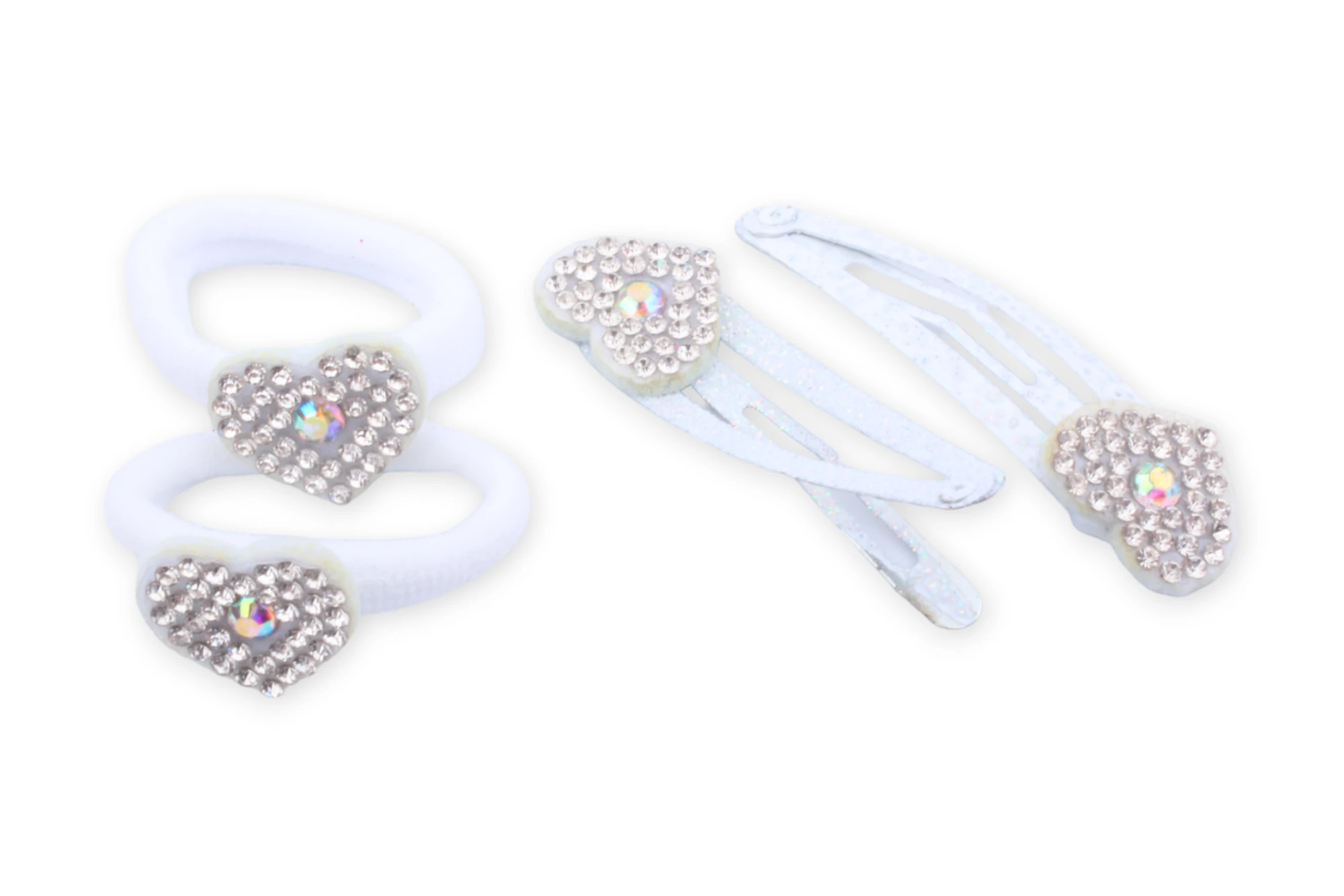 Sada sponek a gumiček srdce s kamínkem bílé 44 Kč
